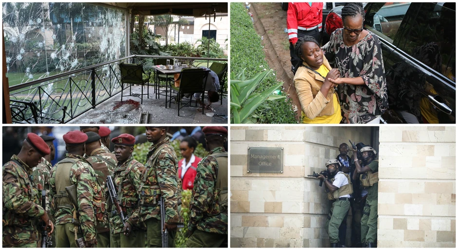 Napad na luksuzni hotel izveli su pripadnici terorističke grupe El-Šabab, blisko povezane sa Al Kaidom, koji su bacali bombe na vozila na parkiralištu, a potom ušli u predvorje hotela, gde se jedan od napadača razneo.