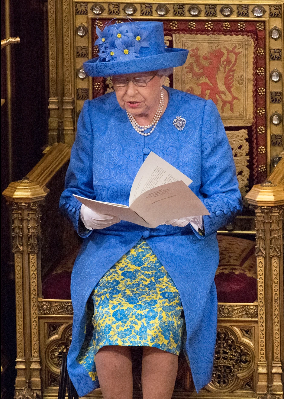 Britanska kraljica Elizabeta pojavila se danas u parlamentu u plavom kompletu i šeširu čiji dezen veoma podseća na zastavu Evropske unije, a mediji se pitaju da li je to bila koncidencija ili sublimirana poruka.