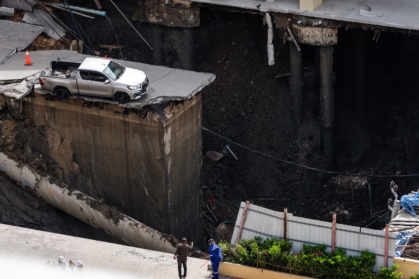 Pojava kratera u zemlji, koji se povezuje sa izgradnjom obližnje podzemne železničke stanice, bila je praćena pucanjem cevi iz kojih su izlazili mlazevi vode, dok su oboreni električni stubovi i kablovi izbacivali električne varnice, prenosi Rojters.