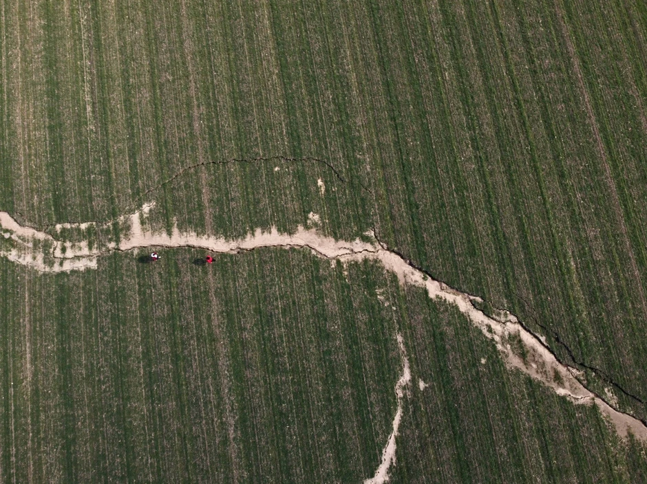 Snimak dronom od 10. februara pokazala je pukotine koje su presekle maslinik u selu.
