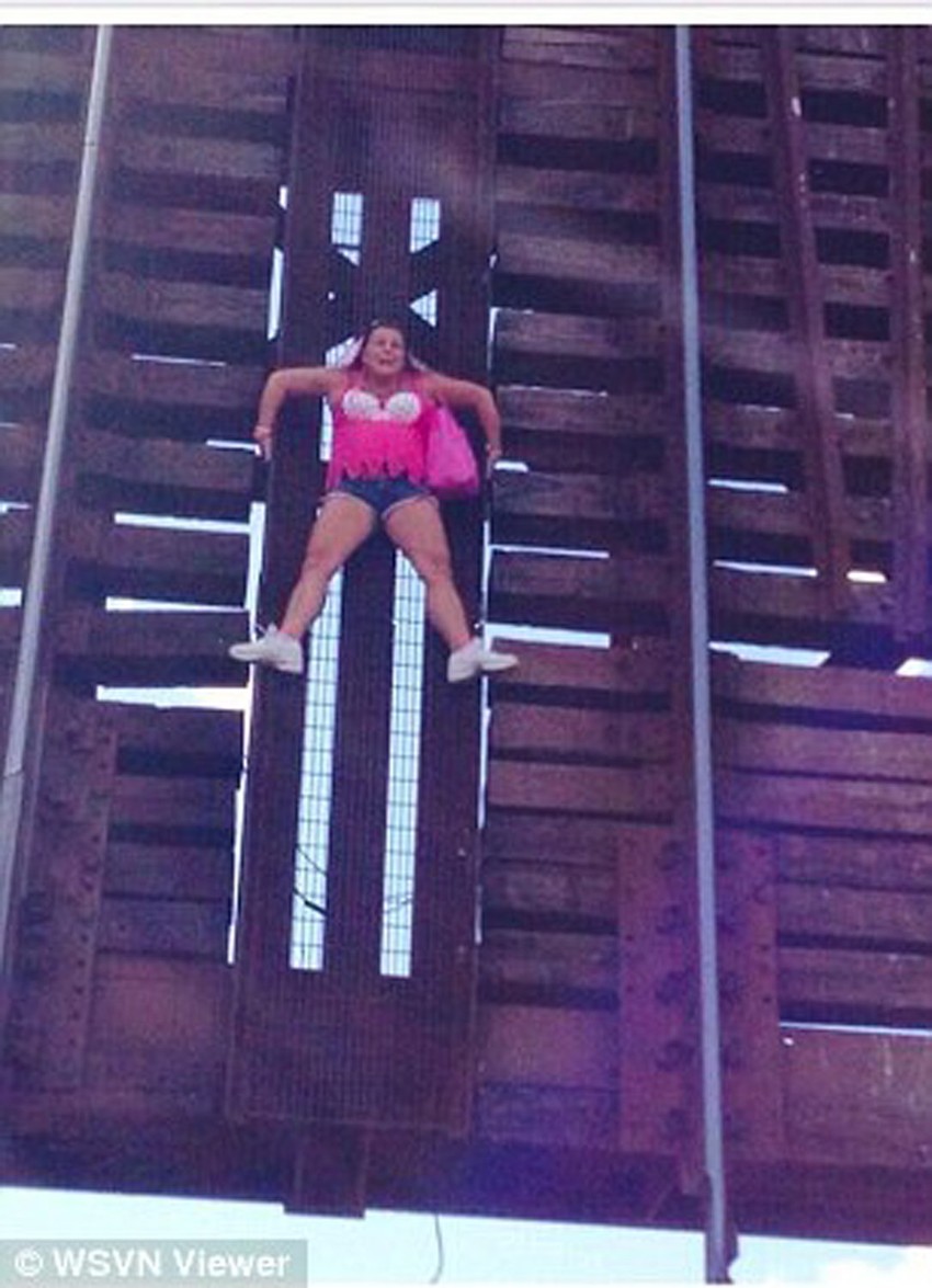 Žena koja je prelazila preko železničkog mosta iznad reke Nju River u Fort Loderdejlu (Florida) ostala je da visi na njemu kada je iznenada počeo da se podiže. Pedesetpetogodišnjakinja iz Danija Biča uhvatila se za šine i ostala da visi.