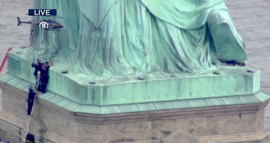 Posle četvoročasnovnog ubeđivanja, njujorška policija je udaljila ženu koja se iz protesta popela na Kip slobode na državni praznik Dan nazavisnosti.