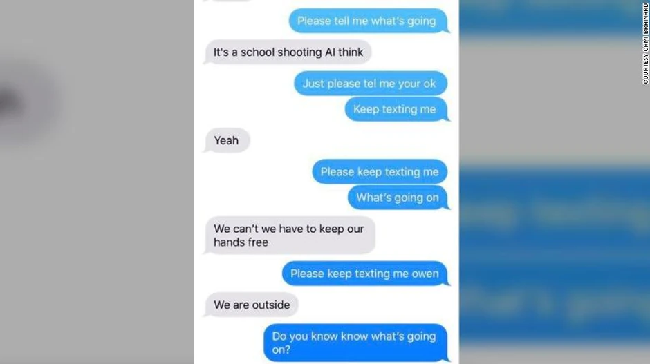 Kami Brejnard (34) i njen sin Oven razmenjivali su poruke 14 minuta dok se učenik osmog razreda skrivao u učionici.
