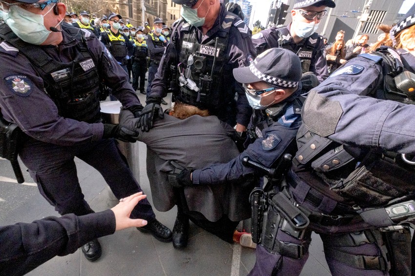 Protesta je bilo i u Melburnu gde je više hiljada demonstranata uzvikivalo "sloboda".
