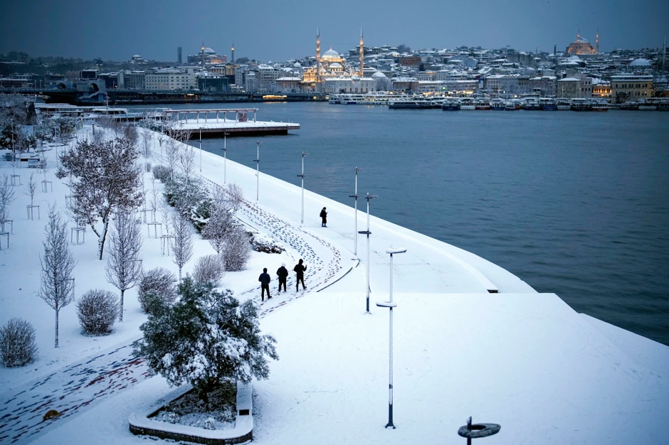 Istanbul je takođe zavejao sneg, saobraćaj je usporen, škole zatvorene, čak je i pomorski saobraćaj obustavljen.