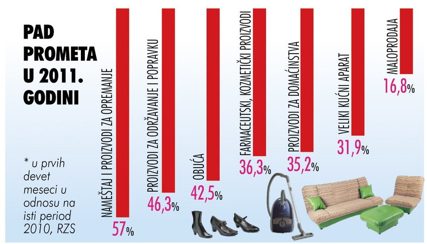 Kupovna moć građana u 2011. oslabila je za trećinu. Pod pritiskom brojnih poskupljenja mnogi su hranu i kućne potrepštine kupovali na pijacama. Potrošači koji su ostali verni radnjama mahom su se preorijentisali na kupovinu jeftinijih proizvoda slabijeg kvaliteta ili trgovačkih robnih marki, dok su mnogi spas tražili u kupovini u nekoj od susednih zemalja.