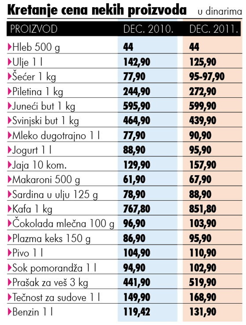 U Pokretu za zaštitu potrošača Beograd ocenjuju da je životni standard građana u 2011. oslabio za 20 odsto.