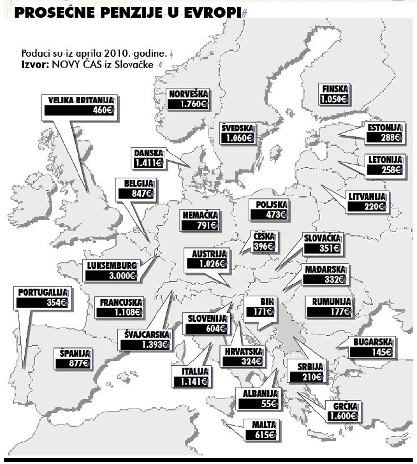 Naše penzije među najnižima u Evropi