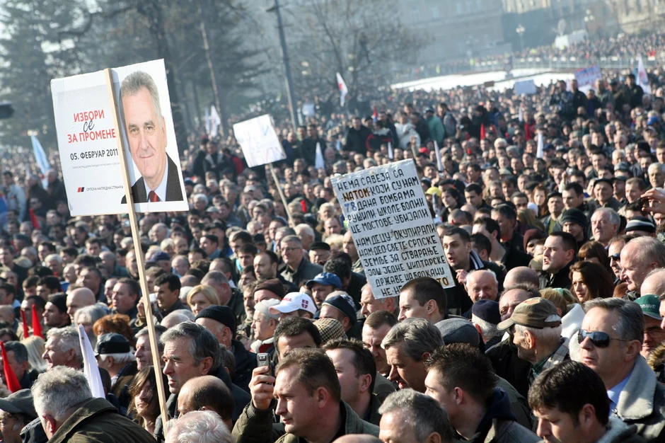 Ima nas toliko da nam niko ništa ne može, rekao je na mitingu SNS njen predsednik Tomislav Nikolić. Obraćajući se prisutnima Nikolić je obećao da će ih, ako vlast ne uvaži zahteve s mitinga, čekati kroz dva meseca na istom mestu. "Videćete me u aprilu na ovom asfaltu kako sedim na stiroporu, a vi ako hoćete priključite se", dodao je Nikolić. Građani se polako razilaze.