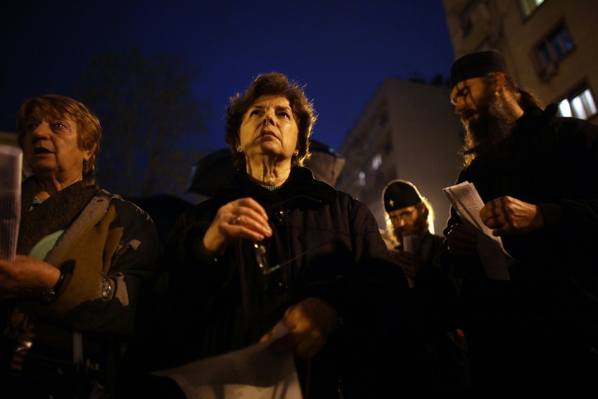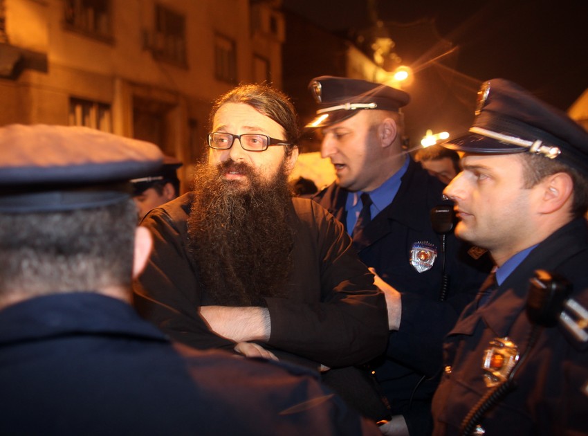 Zasedanje Sabora SPC počelo je u 17 časova u Patrijaršiji, ispred koje se oko 16,30 časova okupilo dvadesetak građana i monaha manastira Crna reka, koji podržavaju vladiku Artemija. Policija je privela raščinjenog monaha manastira Crna reka Antonija Davidovića pošto je on odbio da pozove okupljene da se raziđu. Ovaj skup policija nije odobrila.