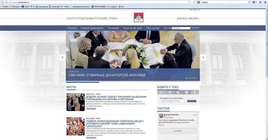Od pre tri dana postoji internet stranica Supruga.predsednik.rs, koja je poddomen predsednikovog sajta (Predsednik.rs) i vizuelno se ne razlikuje od zvanične internet prezentacije predsednika Srbije. Štaviše, kontakti na sajtu predsednikove supruge su isti oni koje koristi predsednik, pa se može zaključiti da predsednikov kabinet, pres služba, sekretar i ostali zaposleni rade i za nju i za njenu fondaciju!