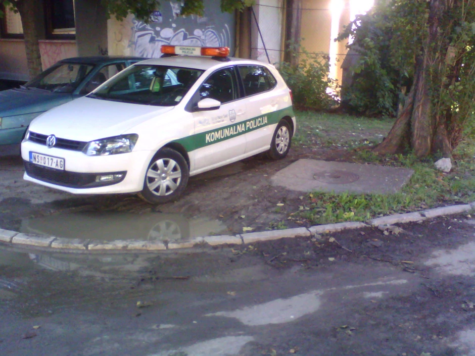 Novosadski komunalni policajci, umesto da čuvaju zelene površine, uništavaju ih parkirajući službene automobile.