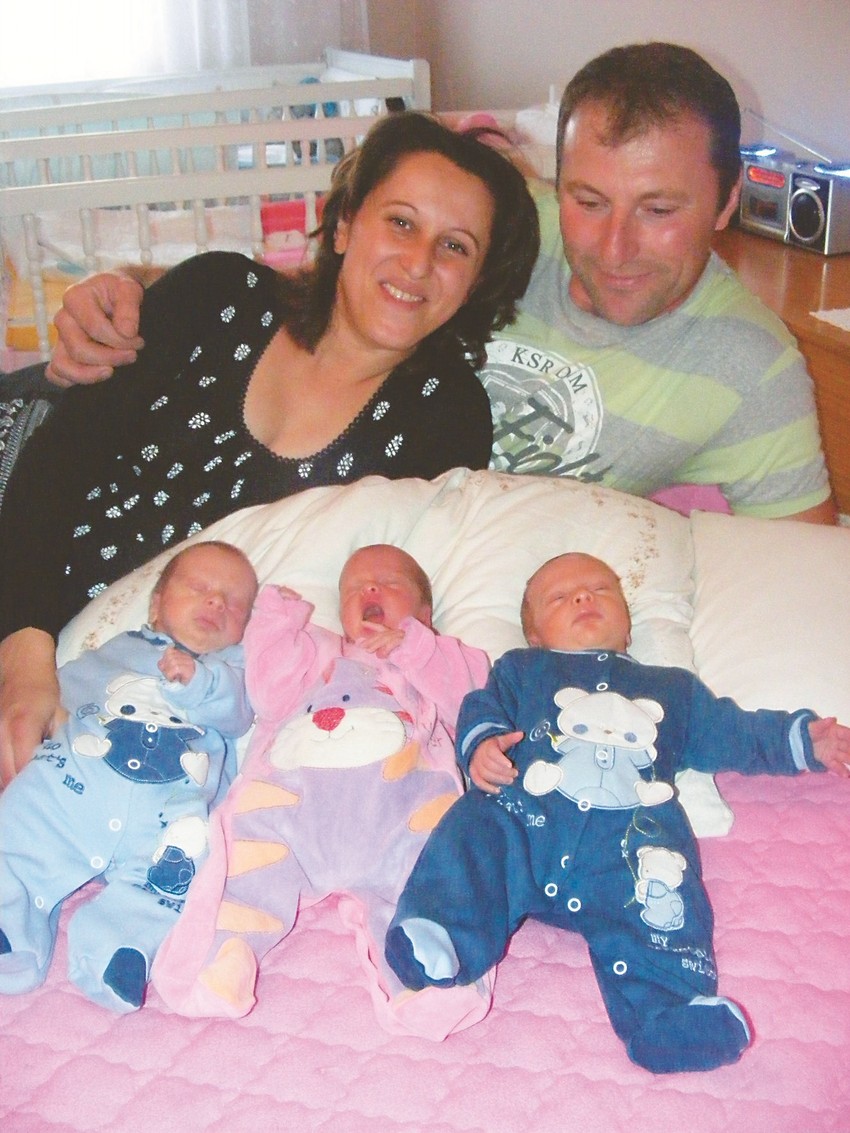 Presrećni smo - kažu roditelji kojima osmeh ne silazi sa lica. - Željno smo ih iščekivali i dočekali posle devet godina zahvaljujući vantelesnoj oplodnji - priča mama Ivana. Lepo je odgajati troje dece, a nije ni teško kad je toliko ljubavi oko njih.
