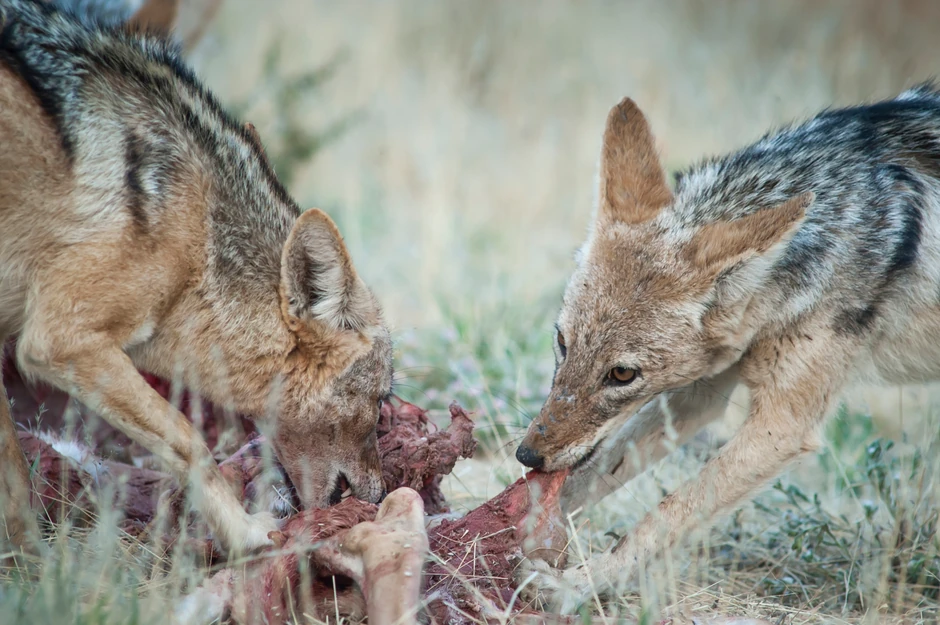 Šakali love u čoporima od pet,šest pa i više jedinki, podižu legla do 10 mladunaca, požvrtvovani su roditelji i imaju jasno podeljene uloge u čoporu.