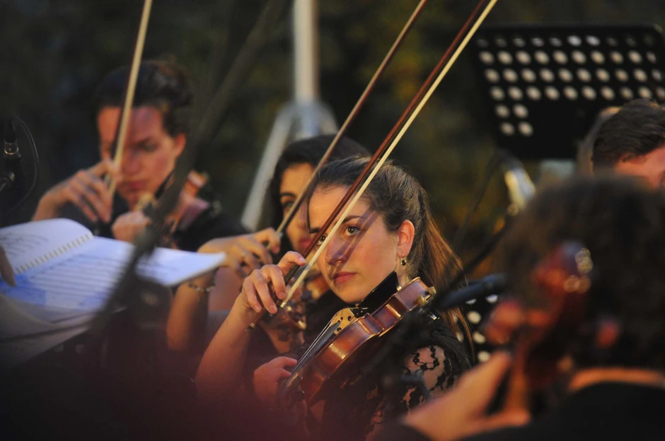 Pod sloganom ''Za nove mostove'', večeras je u dvorištu novosadske Gimnazije ''Jovan Jovanović Zmaj'' održan koncert 100 simfoničara, članova omladinskog orkestra VU (Vrije Universiteit) iz Holandije.