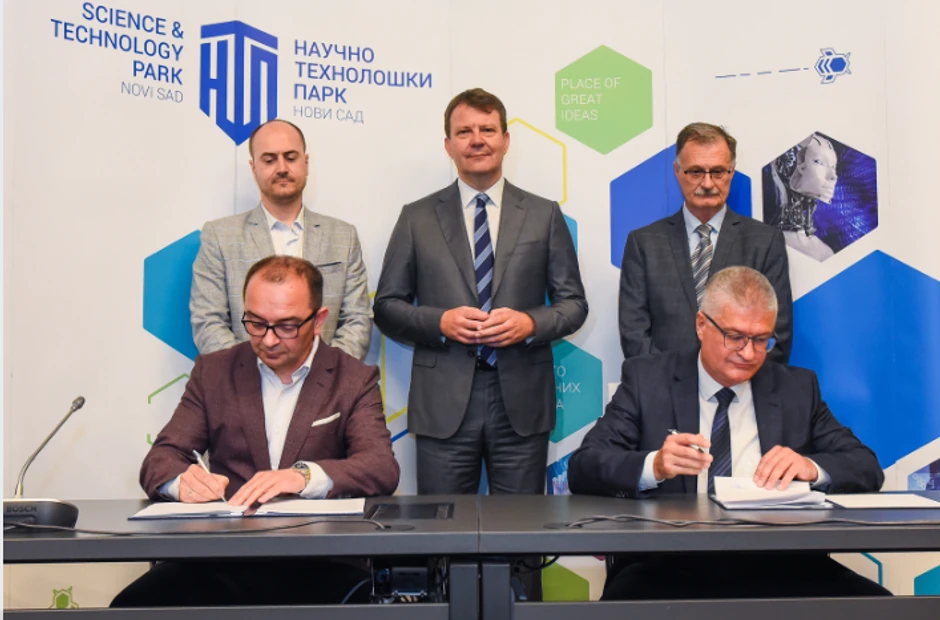 Potpisivanju Ugovora prisustvovali su i direktor Uprave za kapitalna ulaganja Vojvodine Miloš Maletić, direktor Naučno-tehnološkog parka Nebojša Drakulić i dekan Fakulteta tehničkih nauka Srđan Kolaković.