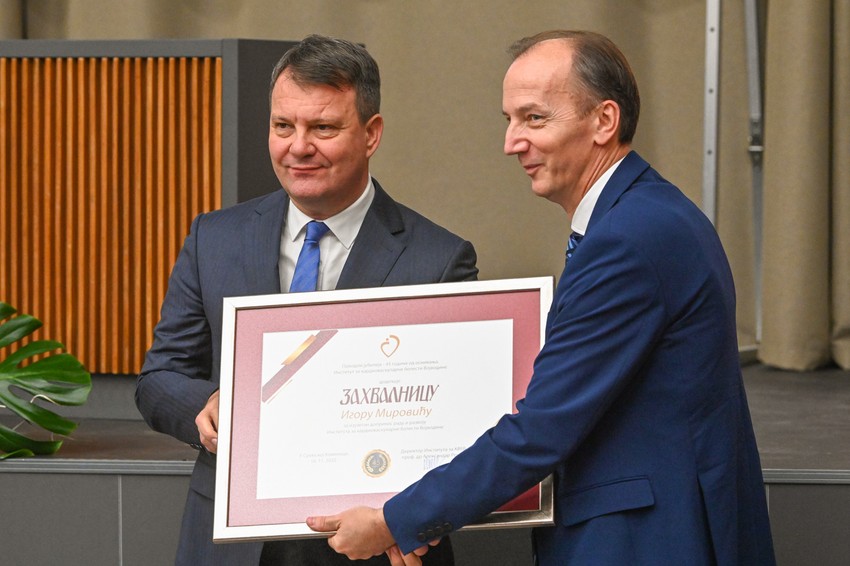 Ovom prilikom, predsedniku Miroviću uručena je zahvalnica za izuzetan doprinos radu i razvoju Instituta.