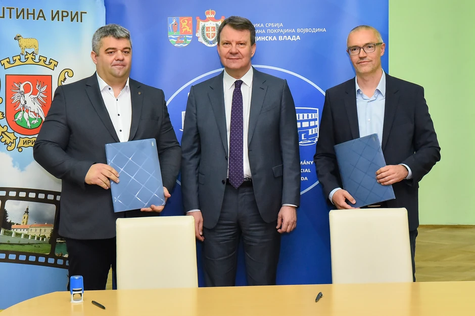 Ugovor za projekat potpisali su predsednik Opštine Irig Tihomir Stojaković i predstavnik izvođača radova, direktor firme Roaming Networks Mihailo Mrđa.