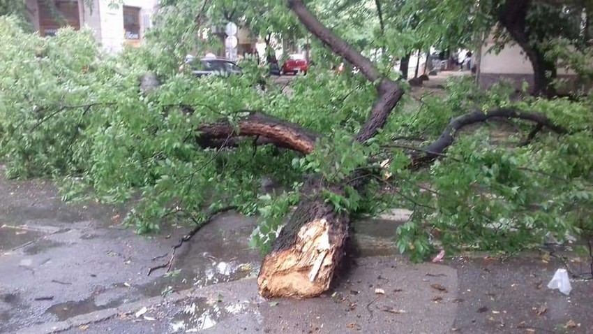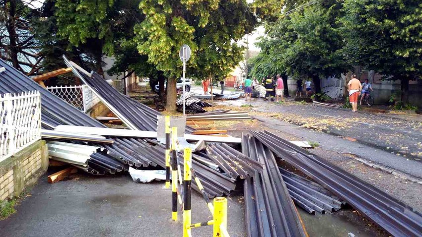 Olujno nevreme zahavtilo je Kikindu oko 19 sati i 20 minuta. Napre je počeo da duva jak vetra, a onda se na grad sručila i jaka kiša, a vetar koji je pratio polomio je nekoliko stabala, u centru grada, kod hotela "Narvik" i u Zmaj Jovinoj ulici.
