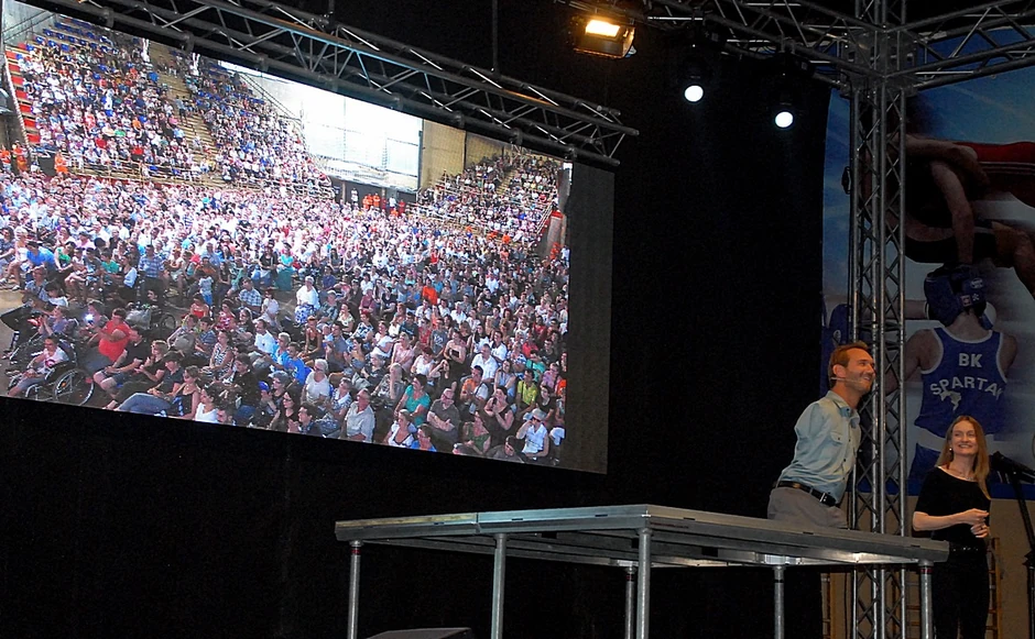 Nik Vujičić, svetski poznati motivacioni govornik i humanista iz Australije poreklom iz Srbije, boravio je danas Subotici i održao predavanje pred 4.000 ljudi u Hali sportova.