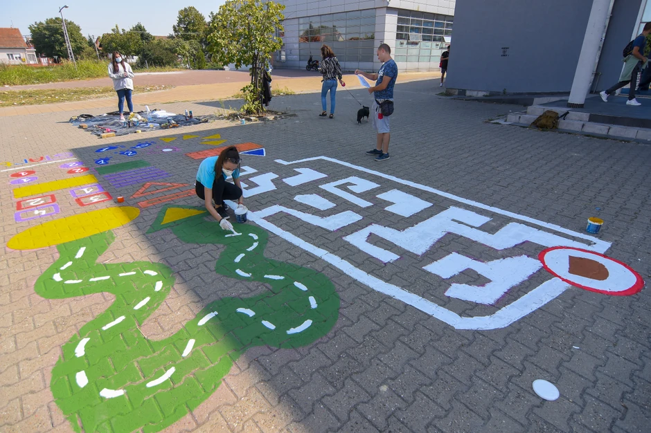 Oslikavanje urbanih gradskih površina u Novom Sadu, koje su namenjene za dečje igre organizovao je „EU info kutak“ povodom Evropske nedelje mobilnosti.