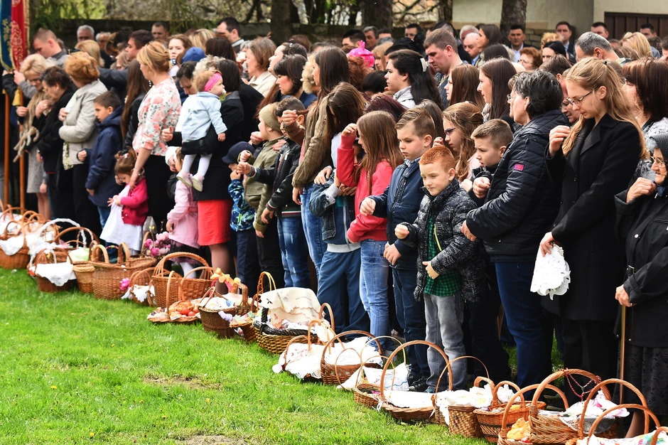 Korpe napunjenje hlebom, šunkom, kobasicama, farbanim jajima, renom, solju, maslacom i njihovim tradicionalnim jelom sirecom nosili su stariji, dok su najmlađi imaju svoje korpice u kojima se mogu naći i slatkiši. Korpe se tradicionalno i ukrašavaju, te pokrivaju posebnim čaršavom na kom često piše “Hristos vaskres”.