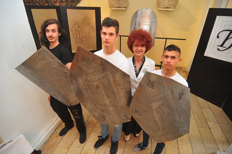 - Štit im se najviše dopao jer je u pitanju defanzivno oružje koje se koristi u plemenite svrhe, da se čovek odbrani od neprijatelja. Idejne skice, alate i tehnološke liste za izradu štitova uradili smo na časovima tehničkog crtanja i tehnologije bravarskog profila, dok smo se na praktičnoj nastavi u školskim radionicama bavili iskucavanjem i cizeliranjem. Razgovarajući s učenicima, došli smo na ideju da na svakom štitu iskucamo stilizovano ćirilično slovo koje označava određeni deo Novog Sada i okoline. Tako su tu obeležja: Podbare, Limana, Detelinare, Rotkvarije, Adica, Futoga, Đurđeva i Bukovca. To su naselja odakle su učenici - kaže Vlajkov.