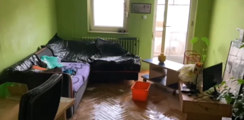 Na snimku koji je objavio portal 021.rs, a koji je nastao u ponedeljak, vidi se kako voda curi sa plafona stana koji se nalazi na šestom spratu zgrade. Kiša koja je ovih dana padala, pričaju stanari, dodatno je uništila plafon, zidove, podove, kao i preostali nameštaj i stvari u stanu.