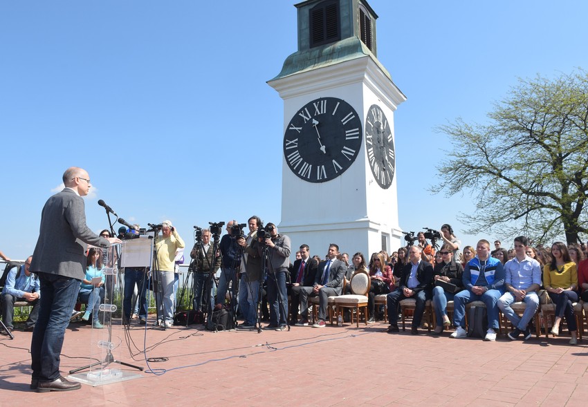 Stipendije sutdentima za školsku 2015/2016, koje iznose po 30.000 dinara, studentima su na platou Petrovaradinske tvrđave uručili Vanja Udovičić, ministar omladine i sporta, i Miloš Vučević, gradonačelnik Novog Sada.