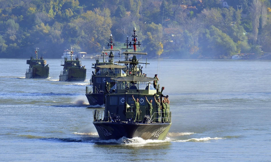 Pripadnici Rečne flotile iz Novog Sada uvežbavali su danas na Dunavu od Ribarca do Žeželjevog mosta svečani defile koji će sa svojim plovnim objektima prikazati na vojnoj paradi 20. oktobra.