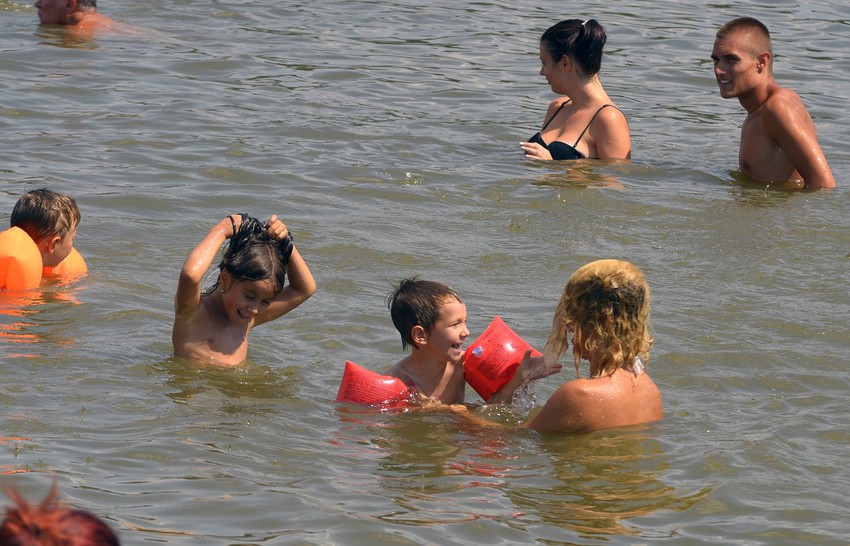 Vrelina uvek na gradsku plažu izvede i najmlađe koji, čini se, najviše uživaju u čarima Dunava.