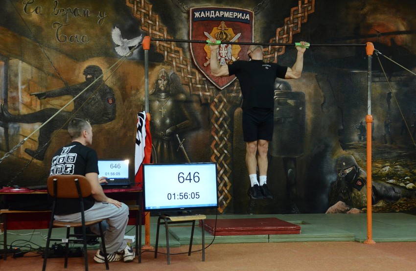 Vinko Trivunović (37), poručnik novosadske Žandarmerije, pokušaće da u narednih 24 sata obori Ginisov rekord u zgibovima.