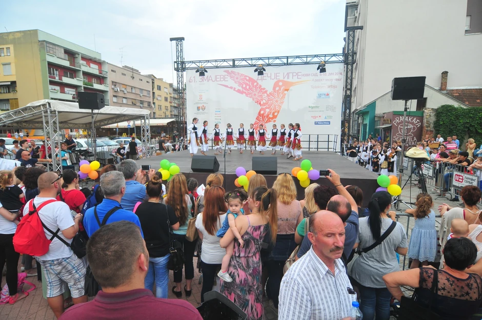 Kako su mediji tada prenosili, bina kod spomenika Čika Jovi Zmaju, koji se nalazi u neposrednoj blizini rezidencije Vladike bačkog Irineja i Saborne crkve, izmeštena je da deca svojom grajom ne bi remetila mir i održavanje liturgija u tom pravoslavnom hramu učestvujući u celodnevnom programu Zmajevih dečijih igara.