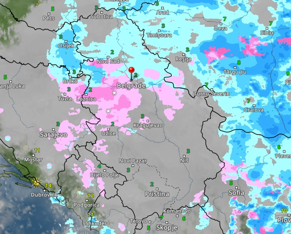 Padavine će se mestimično beležiti po celoj Srbiji, ali će se najviše zadržavati na istoku i severu zemlje. Sneg i kiša mogu se očekivati i u Beogradu.