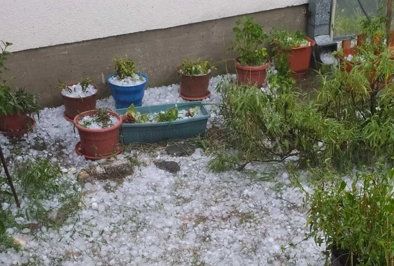 - Molili smo Boga da nam pošalje kišu, bila je vrućina i suša katastrofa sve je pogorelo ali smo uz kišu dobili i grad. Padao je oko 15 minuta veličine graška, lešnika i na žalost dosta je oštećeno i ono malo povrća i voća što je ostalo od ove suše - kaže za RINU Vlada Petrović iz sela Jarmenovci.