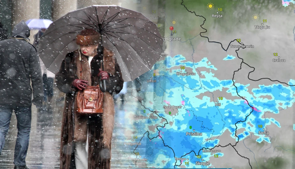 Skoro čitavu Vojvodinu, Beograd, a zatim i centralnu Srbiju jutros je pogodio hladan front sa severozapada zemlje iz pravca Hrvatske, donoseći kišu i niže temperature. Iako je kišni oblak napustio Srbiju oko podneva, nova tura padavina prodire u popodnevnim časova ponovo sa severozapada, ovoga puta donoseći pljuskove, pa čak i sneg!