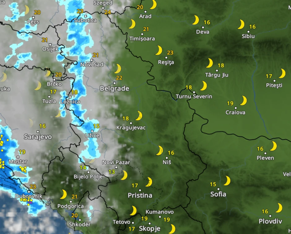 Potom će, sutra u jutarnjim satima stići do Subotice, Vrbasa, Bačke Topole, Novog Sada, Rume, Inđije, Šapca, Obrenovac. Delimično će padavine stići i do Beograda. A već do podneva padavine će na severu zemlje prestati.