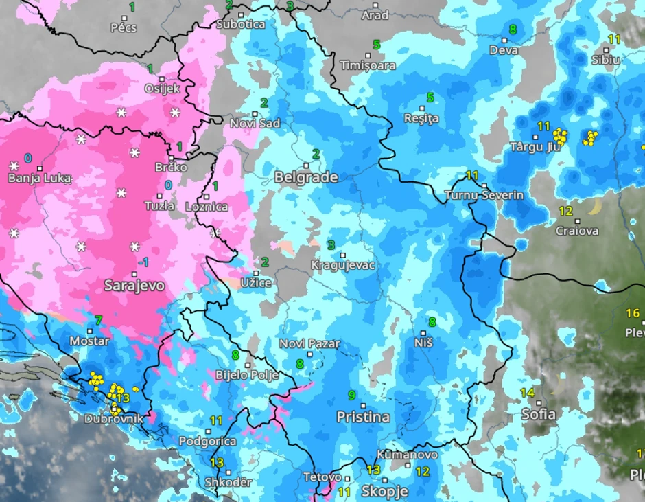 Kretanje kiše i snega u subotu iz sata u sat