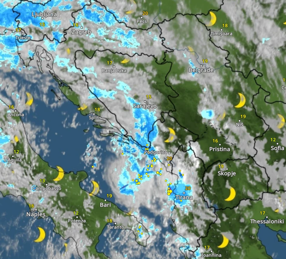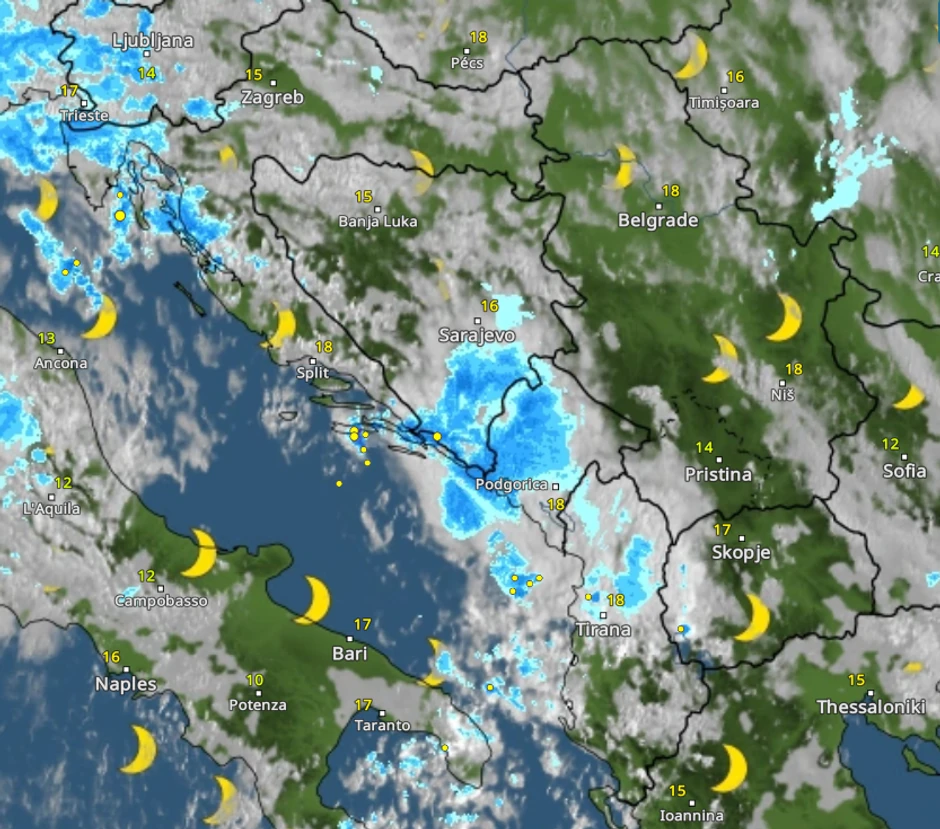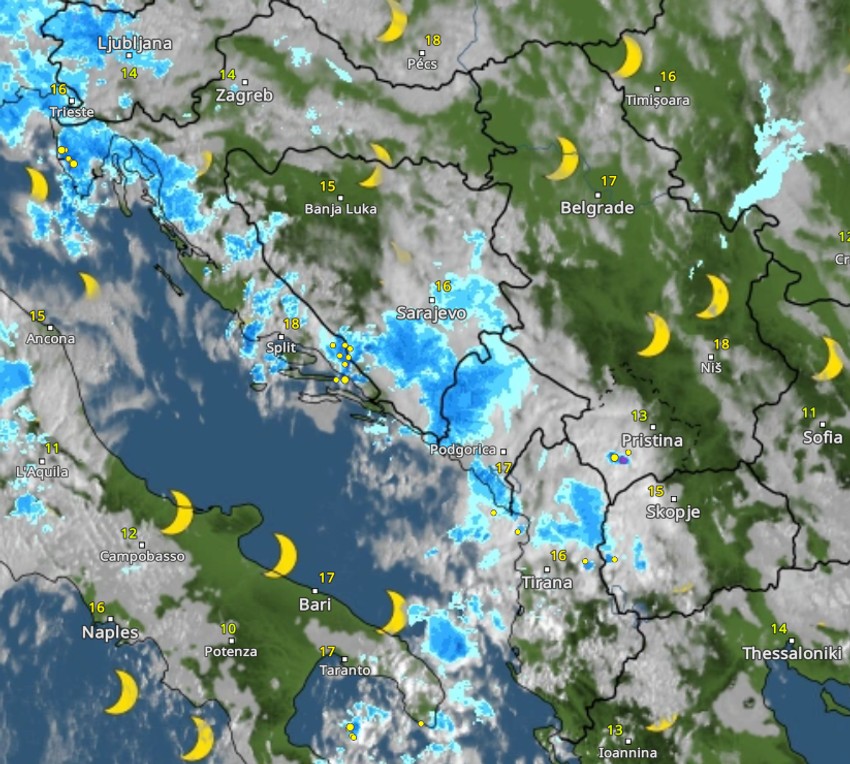 Sudeći po slikama, najveće nevreme očekuje se oko 3 sata ujutru.
