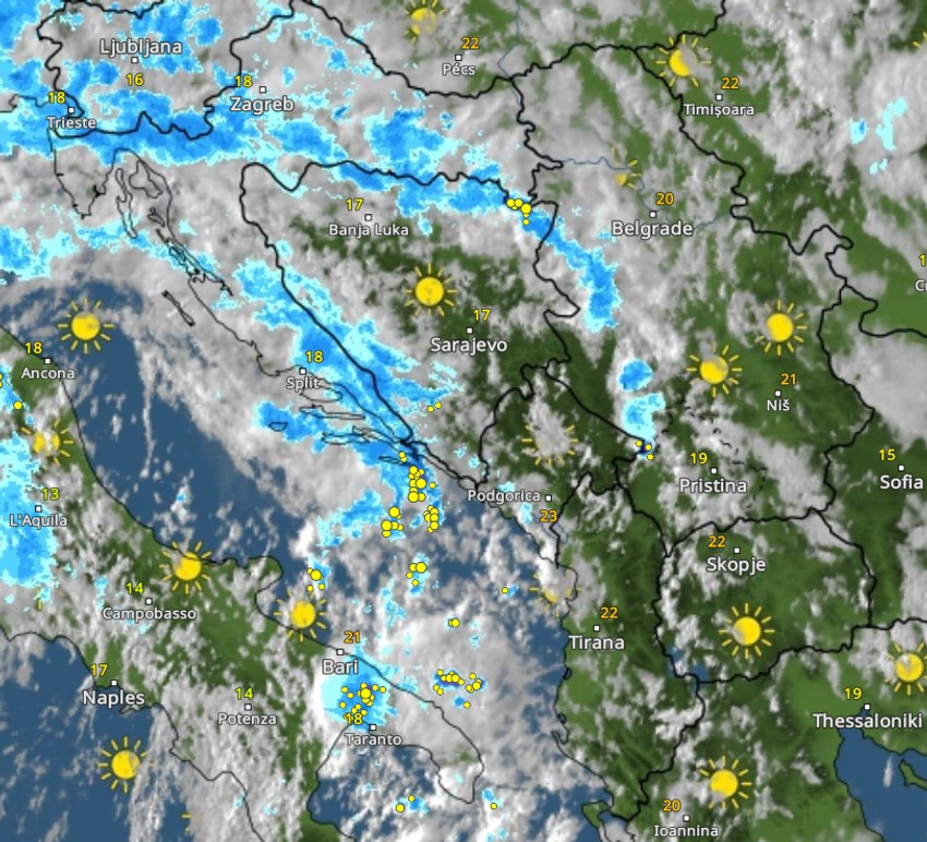 - Promenljivo oblačno, toplo i nestabilno, mestimično s kišom i pljuskovima s grmljavinom koji se u naredna dva sata očekuju u južnim, jugozapadnim, centralnim i zapadnim predelima Srbije, kao i na zapadu Vojvodine, a kasnije posle podne, uveče i tokom noći mestimično i u ostalim krajevima Srbije - stoji u upozorenju RHMZ.