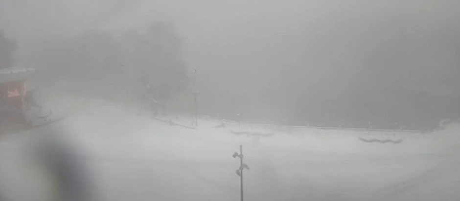 Kako se vidi na snimcima sa nadzornih kamera sa Zlatibora, sneg uveliko pada, a centar Zlatibora potpuno je zavejan.