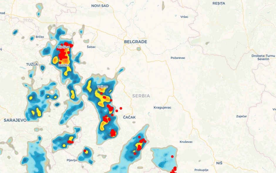 Kako se može videti na radarskim slikama na sajtu Neverin.hr, snažno nevreme u Srbiju dolazi iz okolnih zemalja, iz Bosne iz Hercegovine se kišonosni oblaci premeštaju ka Srbiji i to velikom brzinom.