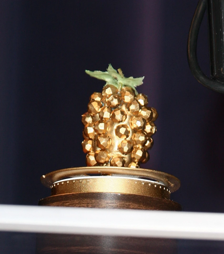 Pobednici koji obično ne dodju na ceremoniju dodele, dobijaju skulpturu maline veličine loptice za golf na filmskoj traci. Sve je ofarbano zlatno-žutom bojom, a košta 4,79 dolara.