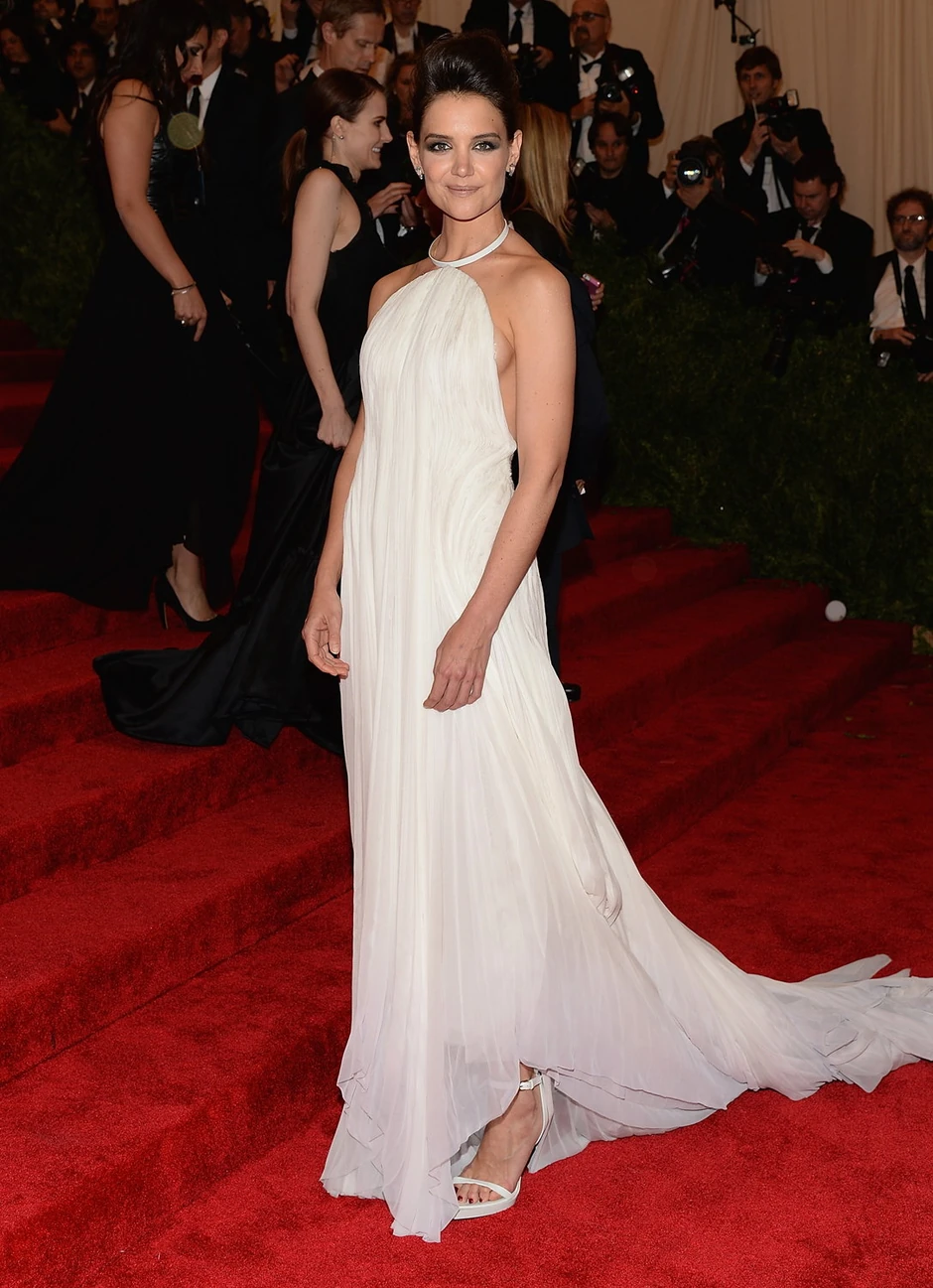 Kejti Holms imala je belu "Kelvin Klajn" (Calvin Klein) haljinu koja je na krajevima delovala kao iscepana krpa.