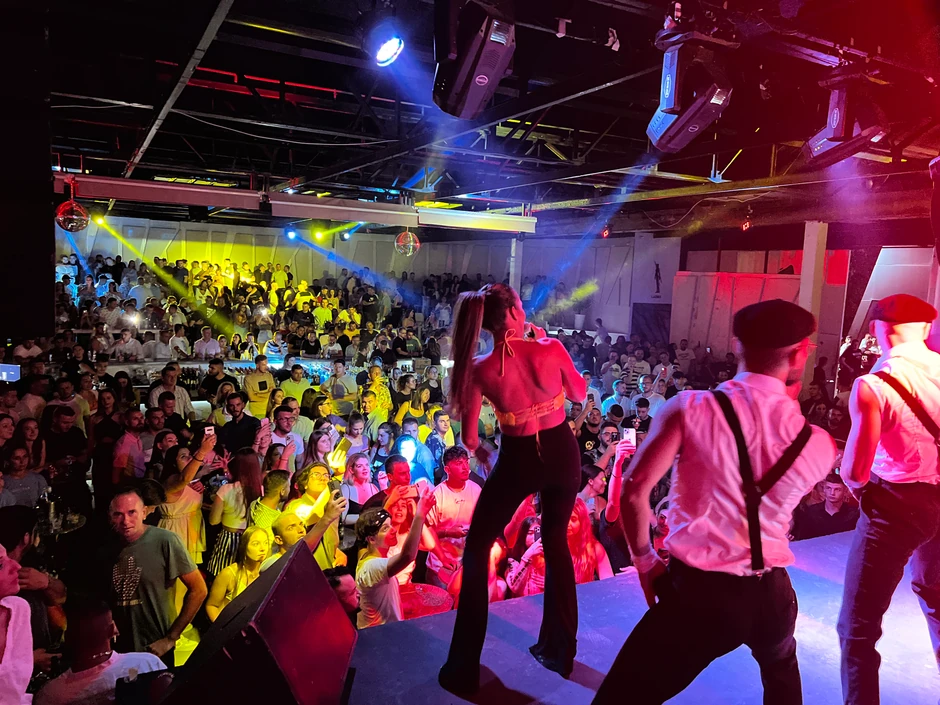 Anastasija se u pratnji četiri atraktivna muškarca pojavila na sceni, a publika ih je pozdravila gromoglasnim aplauzom. Ređali su se hitovi “Rane”, “Izvini”, “Promašena”, “Gotovo”, a gosti kluba su u glas pevali sa Anastasijom.