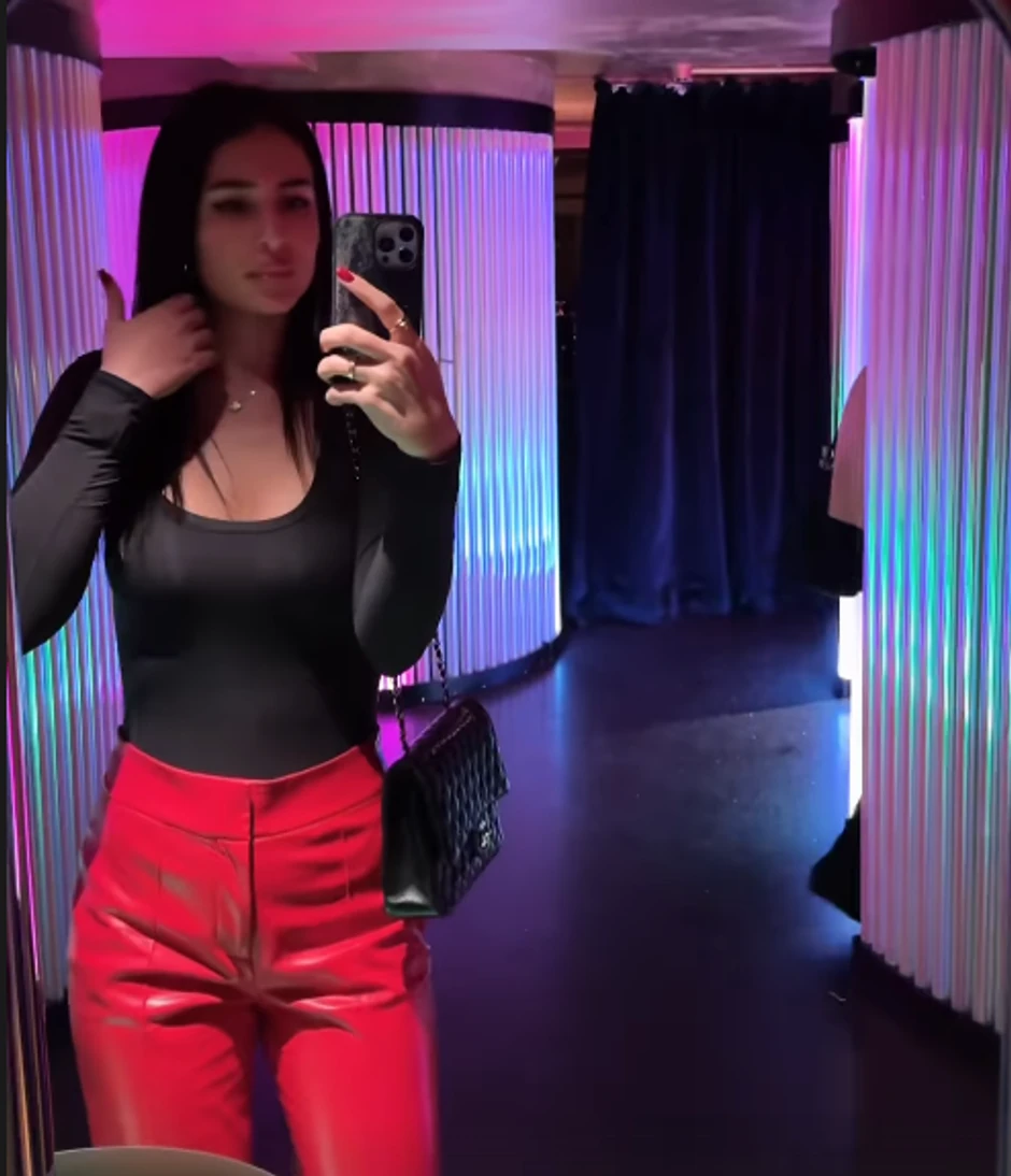 Anastasija se snimala u diskoteci u crnom bodiju i crvenim kožnim pantalona koje su istakle njenu vitku figuru.