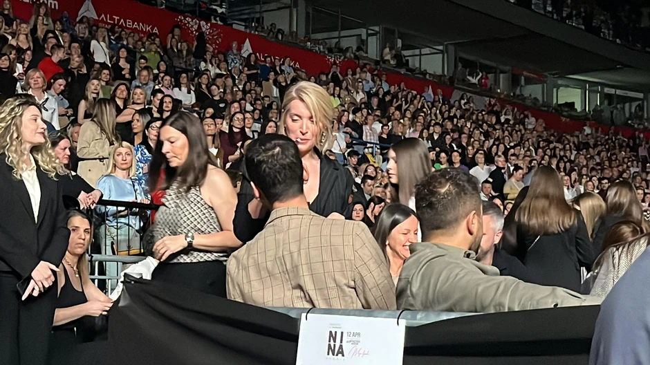 Pevačica Nina Badrić večeras će održati koncert u beogradskoj Areni, a mnogobrojne poznate ličnosti došle su da slušaju njenu muziku.