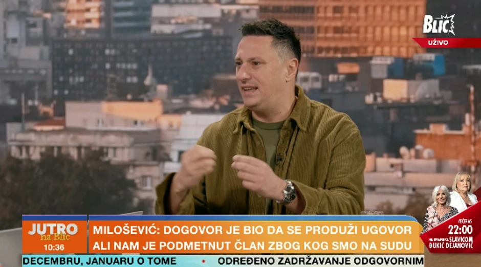 Andrija Milošević je u "Jutru na Blic" izjavio da je dogovor bio da se produži ugovor, ali im je, kako tvrdi, podmetnut član u ugovoru zbog kog su na sudu.