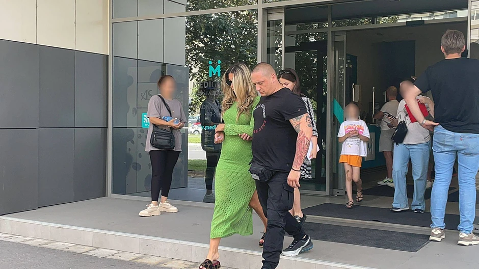 Aneli smo uslikali po izlasku iz klinike, nju je član obezbeđenja "Pinka" držao pod ruku dok su hodali ka kolima.