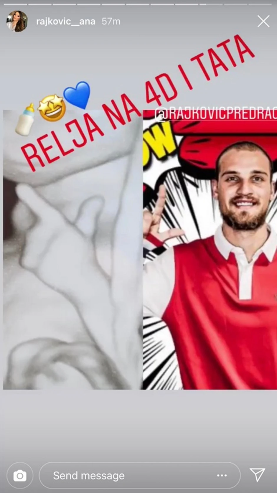- Relja na 4D i tata - napisala je supruga Predraga Rajkovića, koja bi svakog trenutka mogla da se porodi, u opisu objave.